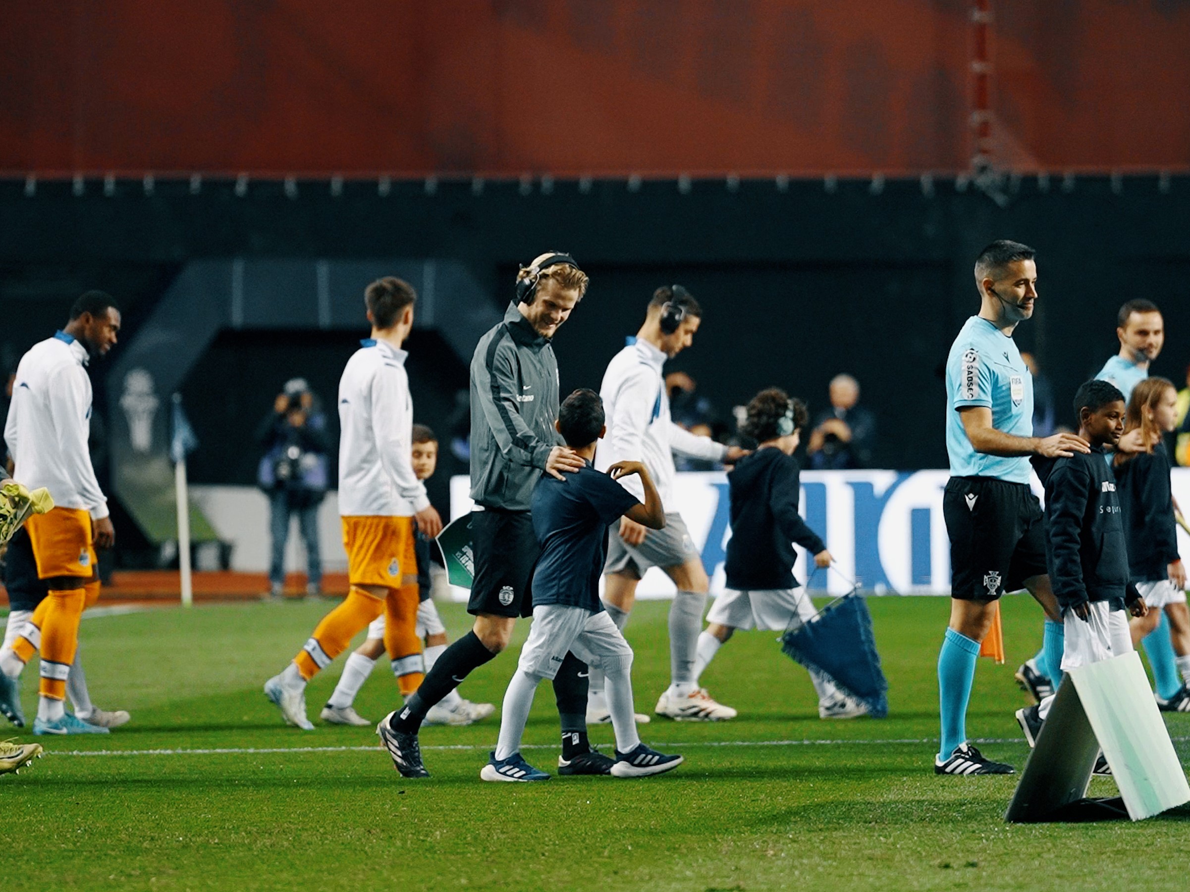 Os capitães de equipa também surgiram no relvado com este equipamento, a reforçar a mensagem do Futebol que nos une: todos têm lugar na Final Four da Allianz CUP. Porque a festa é melhor com amigos, cada criança teve também a companhia de um amigo, para garantir que esta é mesmo uma experiência inesquecível.