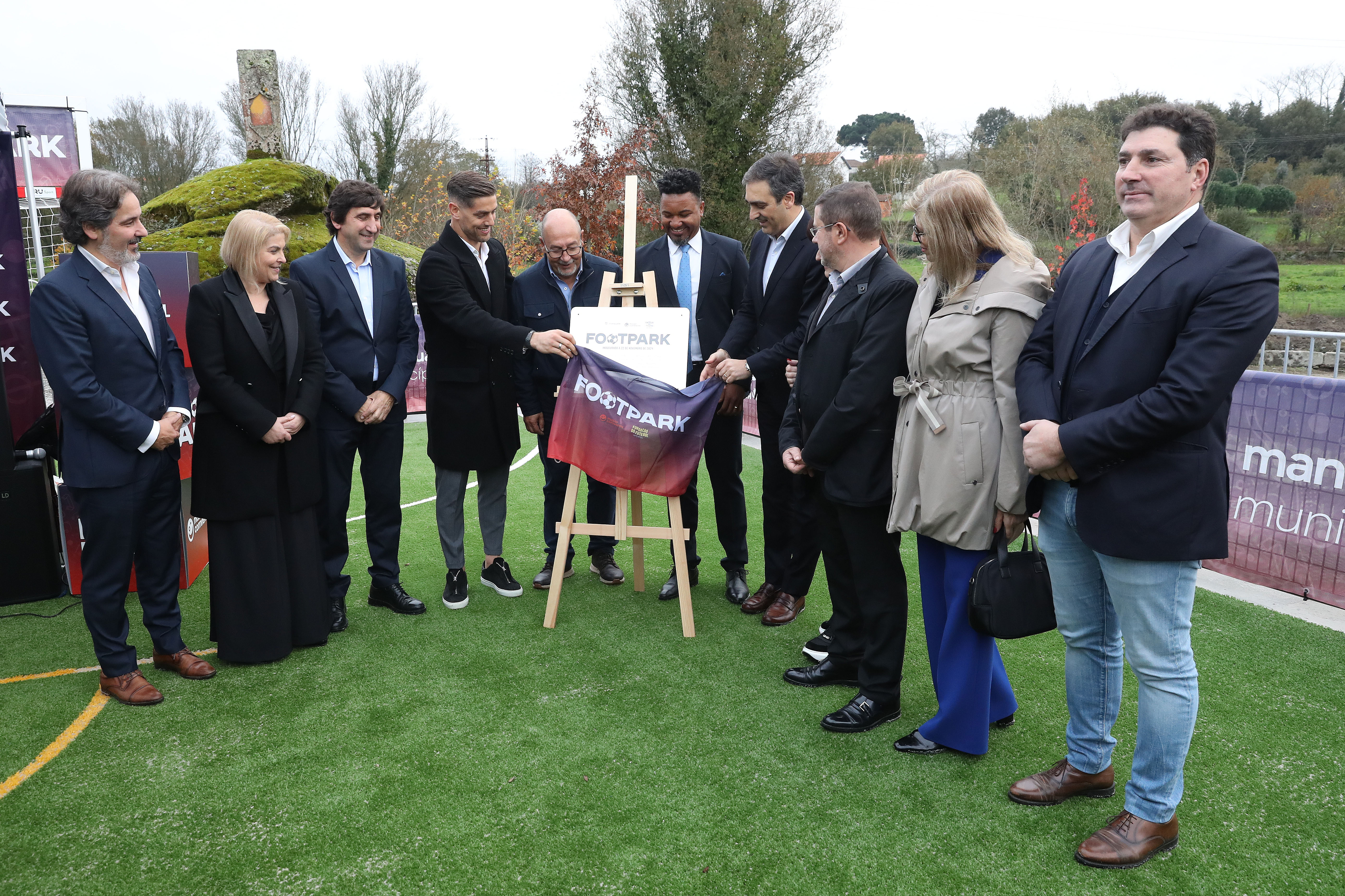 A assinatura do protocolo das diversas entidades envolvidas no FOOTPARK de Mangualde foi feita, simbolicamente, numa bola de futebol, seguida do descerrar da placa da inauguração.