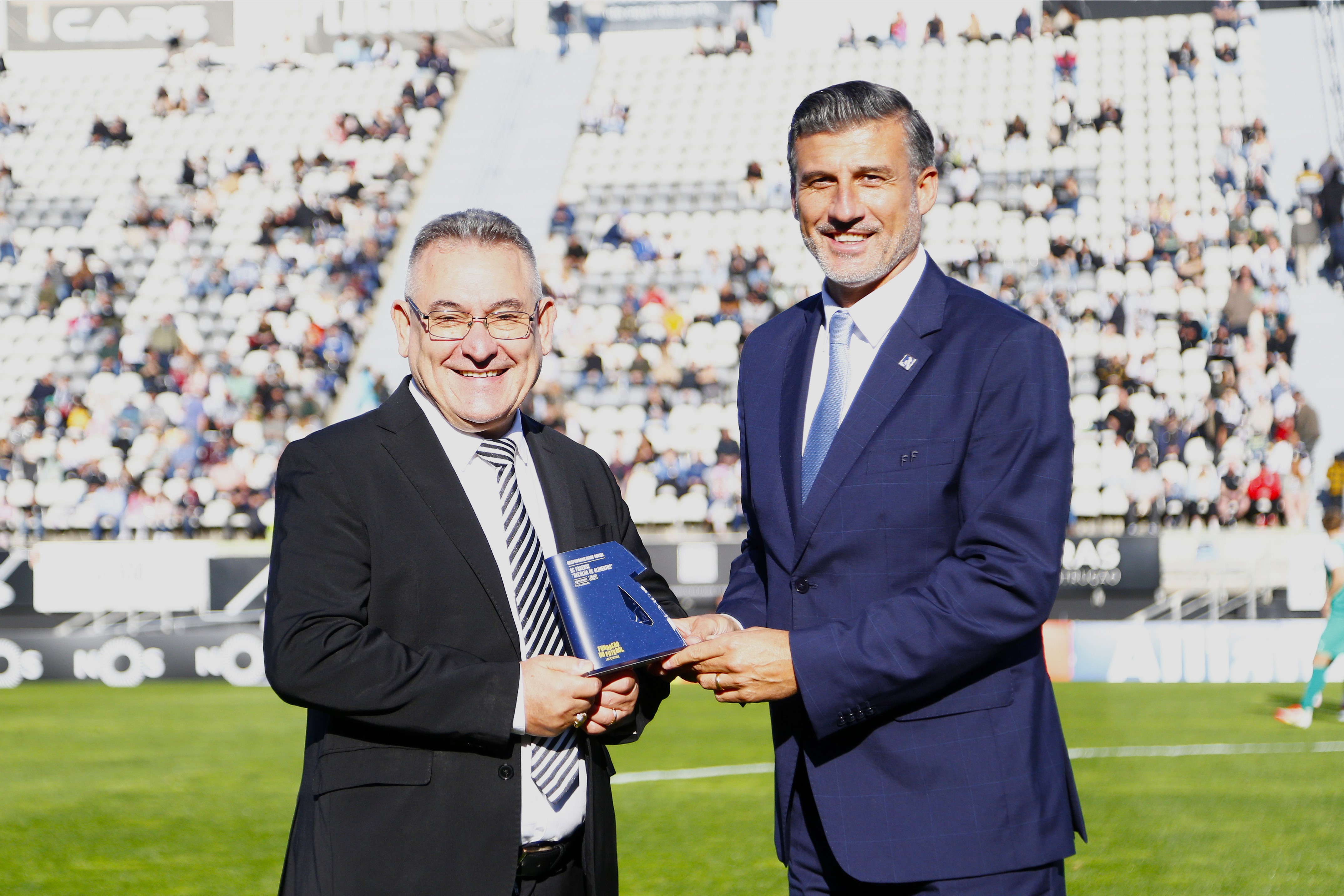 Nelson Pereira, vogal do Conselho de Administração da Fundação do Futebol, entregou a distinção a João Rodrigues, Presidente do SC Farense, como reconhecimento pela campanha “Recolha de Alimentos”