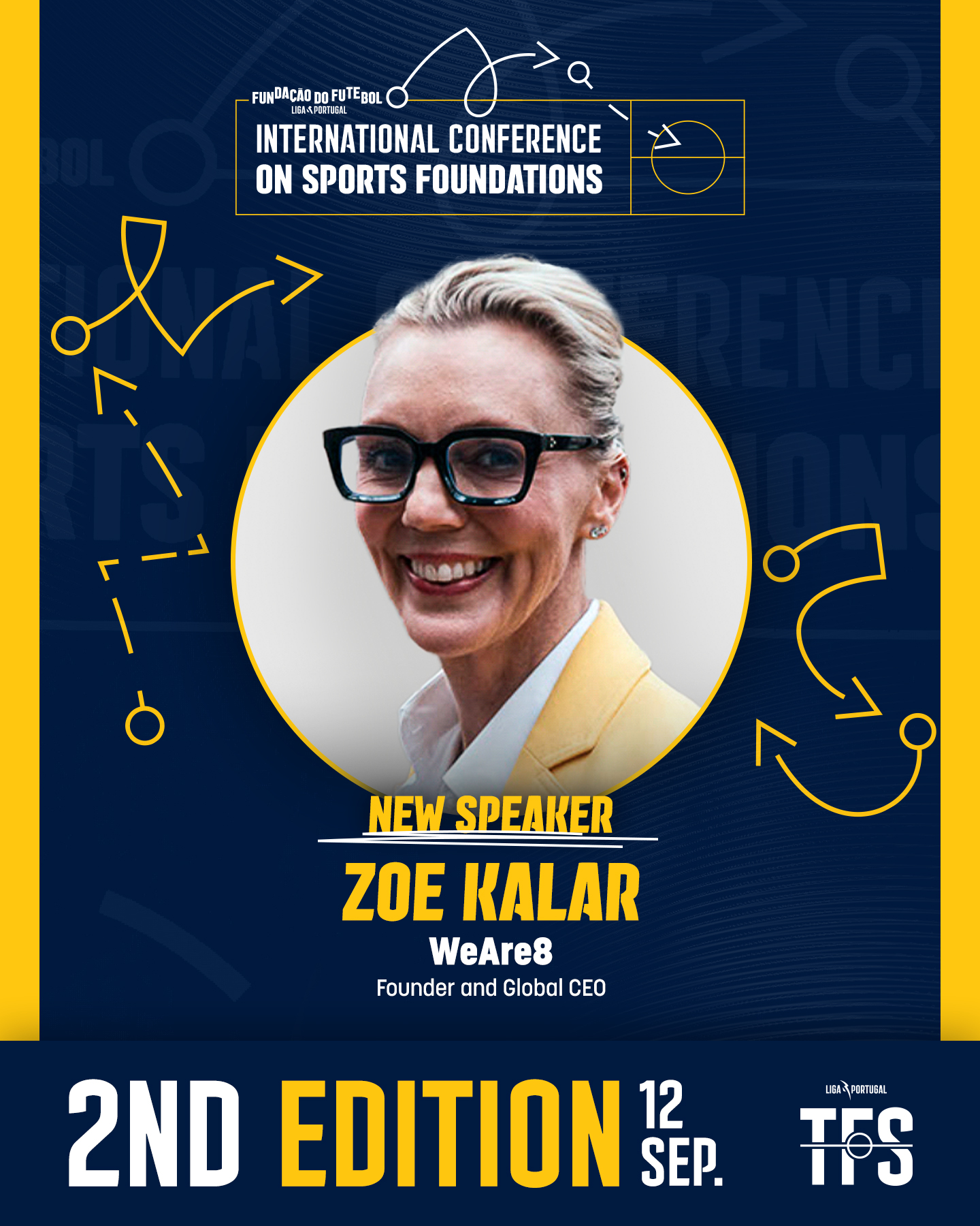 O lote de oradores do 2º Congresso Internacional de Fundações Desportivas, marcado para 12 de setembro, continua a ganhar forma: Zoe Kalar, fundadora e CEO da WeAre8, é mais uma presença confirmada na discussão das grandes temáticas que ligam o Futebol Profissional e a intervenção social. A Super Bock Arena, no Porto, será o palco do evento que decorre, uma vez mais, integrado no âmbito do Thinking Football Summit.